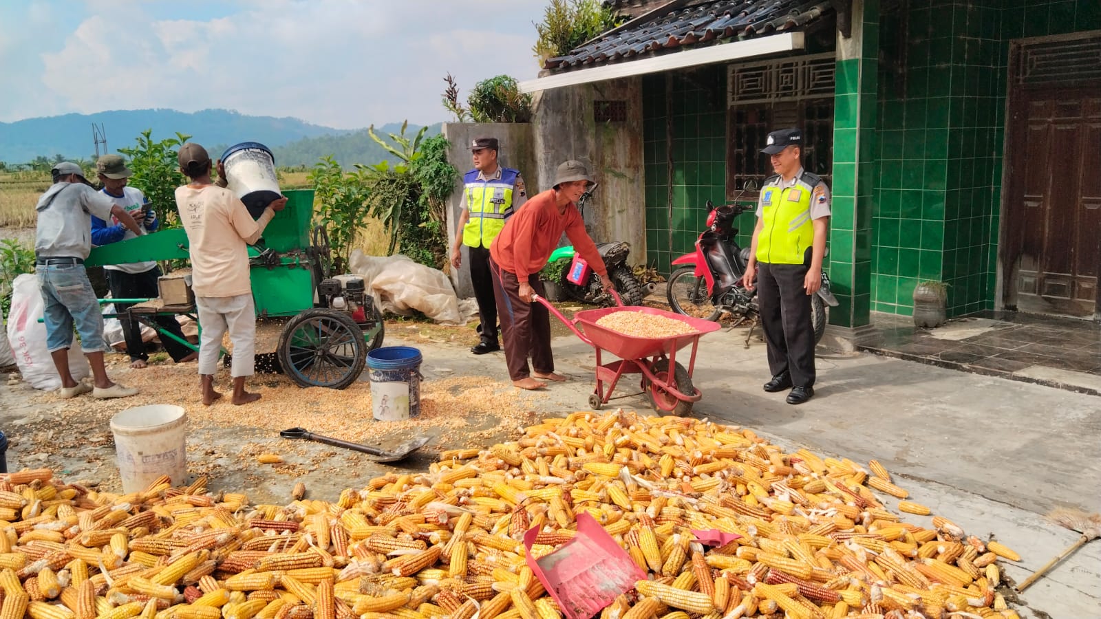BREBES – Jajaran Polsek Paguyangan terus berkomitmen mendukung program ketahanan pangan nasional dengan terjun langsung mendampingi para petani di wilayahnya. Pada Senin (02/02/2026) siang, sejumlah personel Polsek Paguyangan melaksanakan monitoring dan pengecekan proses mipil atau mocel (pemipilan) hasil panen jagung milik warga.