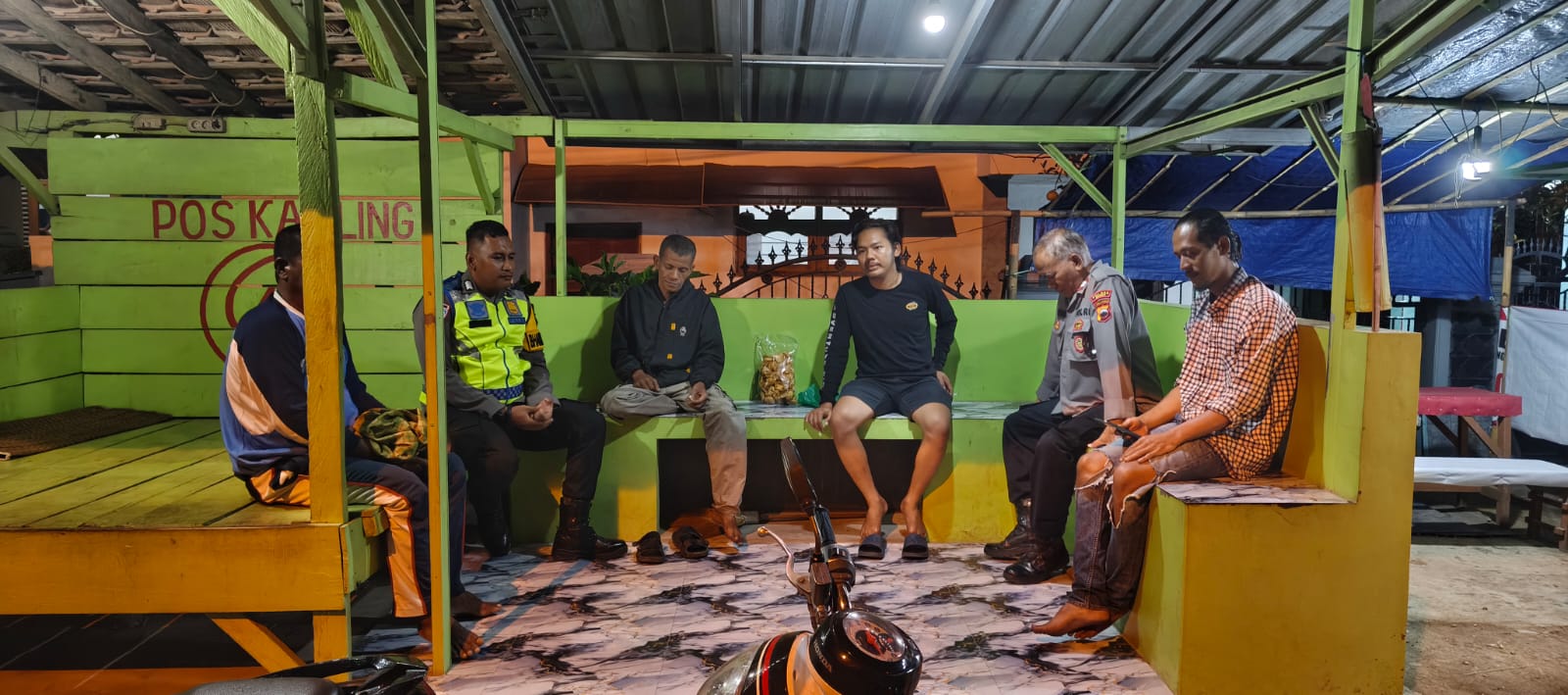 Kegiatan yang dimulai pukul 23.30 WIB tersebut dipimpin oleh Aiptu H. Sutrisno bersama Aiptu F. Imam dan Bripka Hermin N. Kehadiran personel kepolisian di tengah malam ini bertujuan untuk mempererat silaturahmi sekaligus memastikan kesadaran keamanan warga tetap terjaga.
