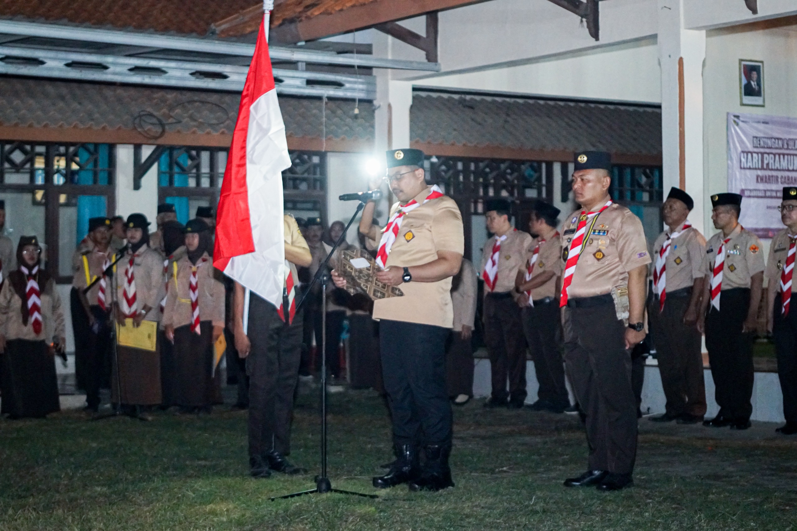 Hadir dalam acara tersebut Wakil Ketua Majelis Pembimbing Cabang (Wakamabicab) Wurja, SE, Ketua Kwarcab Brebes Ir. Djoko Gunawan, MT, serta segenap pengurus dan pembina pramuka Kwarcab Brebes. Prosesi dimulai dengan mematikan lampu dan hanya menyisakan cahaya lilin yang berkelip tenang sebagai simbol keabadian semangat Pramuka.
