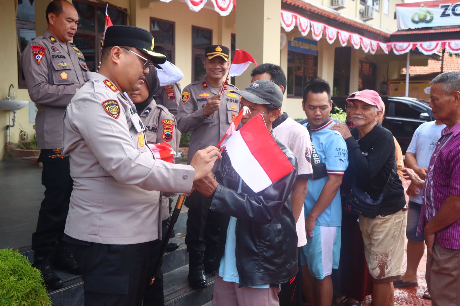 Polres Brebes Bagikan Bendera Merah Putih untuk Semarakkan Peringatan HUT Kemerdekaan RI ke-80