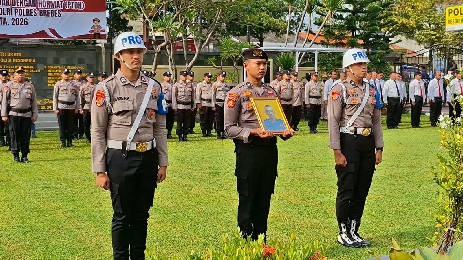 Brebes – Kepolisian Resor (Polres) Brebes, Jawa Tengah menggelar upacara Pemberhentian Dengan Tidak Hormat (PTDH) terhadap satu orang personelnya. Kegiatan dilaksanakan di lapangan apel Tribrata Mapolres Brebes, Jumat 27 Februari 2026. Langkah tegas ini diambil sebagai bentuk komitmen Polri dalam menegakkan disiplin dan menjaga integritas institusi.