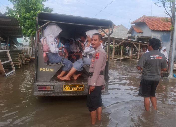 Melihat kondisi itu, Polsek Losari dengan sigap menurunkan personel untuk membantu proses mobilisasi warga. Petugas mengevakuasi anak-anak dari pemukiman menuju titik jalan yang aman serta memastikan mereka dapat sampai ke sekolah tepat waktu. Warga yang hendak beraktivitas juga difasilitasi agar dapat melanjutkan perjalanan tanpa harus terhalang genangan air.