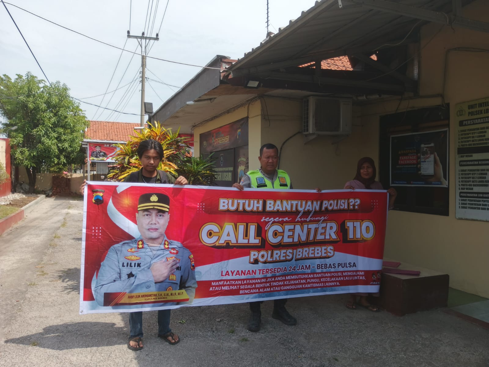 Brebes – Dalam rangka memberikan pelayanan cepat kepada masyarakat, Polsek Losari melaksanakan kegiatan sosialisasi Call Center 110 dengan pemasangan spanduk/banner di wilayah Kecamatan Losari, Kabupaten Brebes, Kamis (25/9/2025) pukul 10.10 WIB.