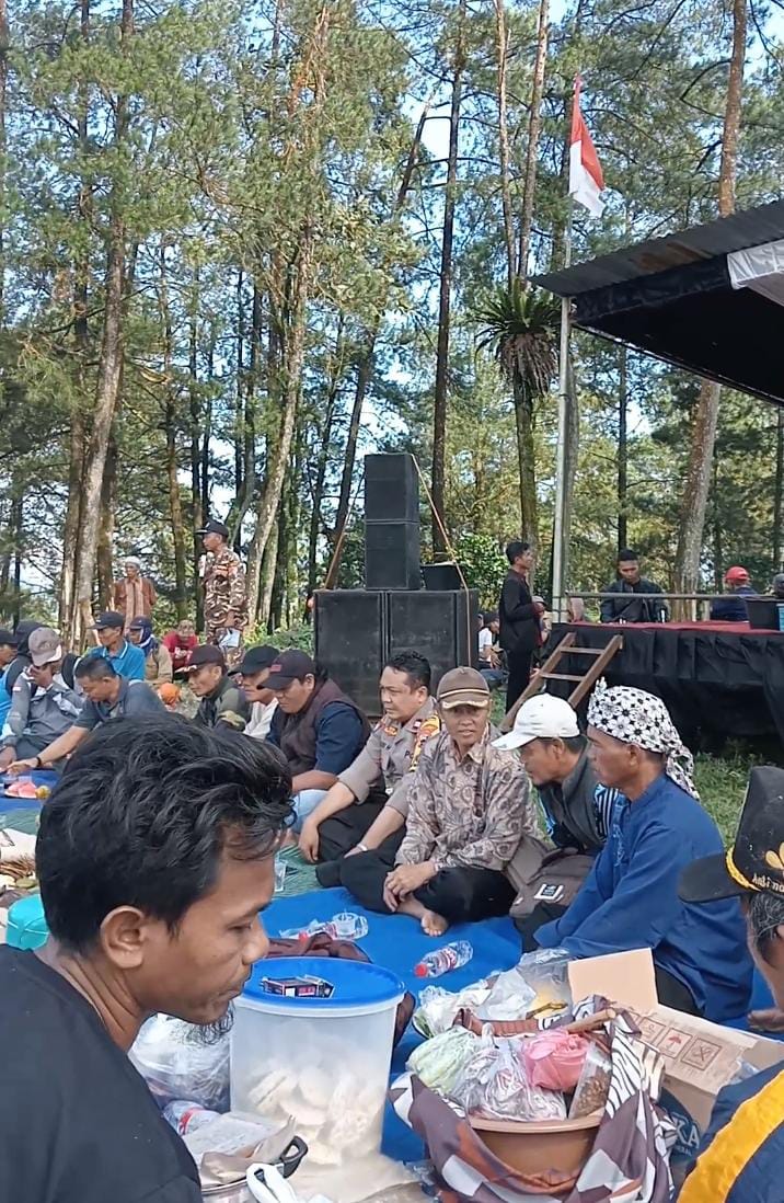 Polsek Salem Polres Brebes menghadiri kegiatan tradisi Sedekah Kandang Kerbau yang digelar Paguyuban Ternak Kerbau Lio, bertempat di puncak Gunung Lio, Kecamatan Salem, pada Sabtu (6/9/2025).