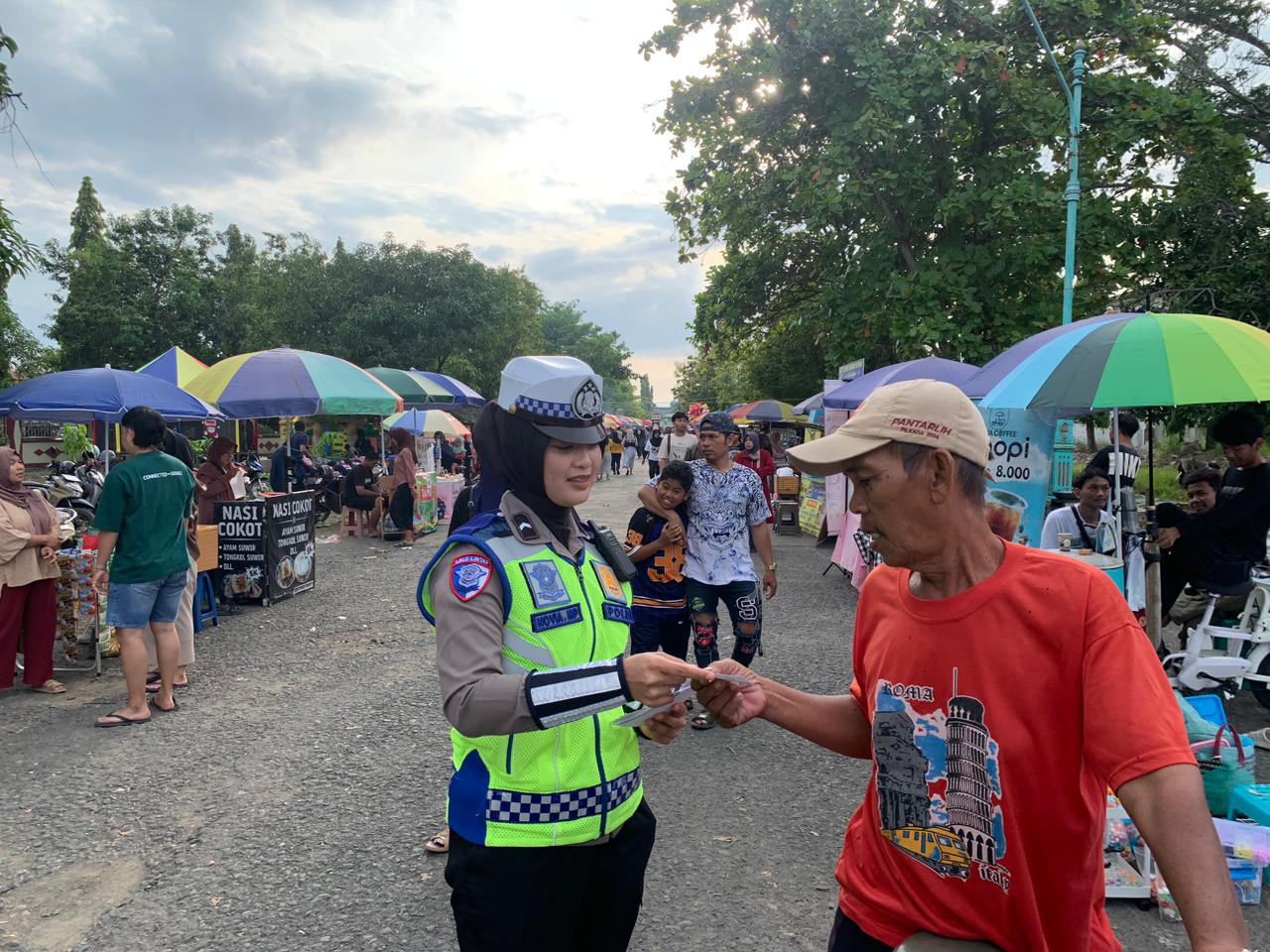 Dalam kegiatan tersebut, personel Satlantas memadukan seni dan edukasi melalui Police Art, menampilkan pesan-pesan tertib lalu lintas yang dikemas secara menarik dan mudah dipahami. Masyarakat yang berada di area Islamic Center mendapat penyuluhan langsung terkait aturan berkendara yang benar, termasuk kewajiban menggunakan helm SNI, larangan menggunakan ponsel saat berkendara, hingga pentingnya sabuk keselamatan bagi pengemudi mobil.