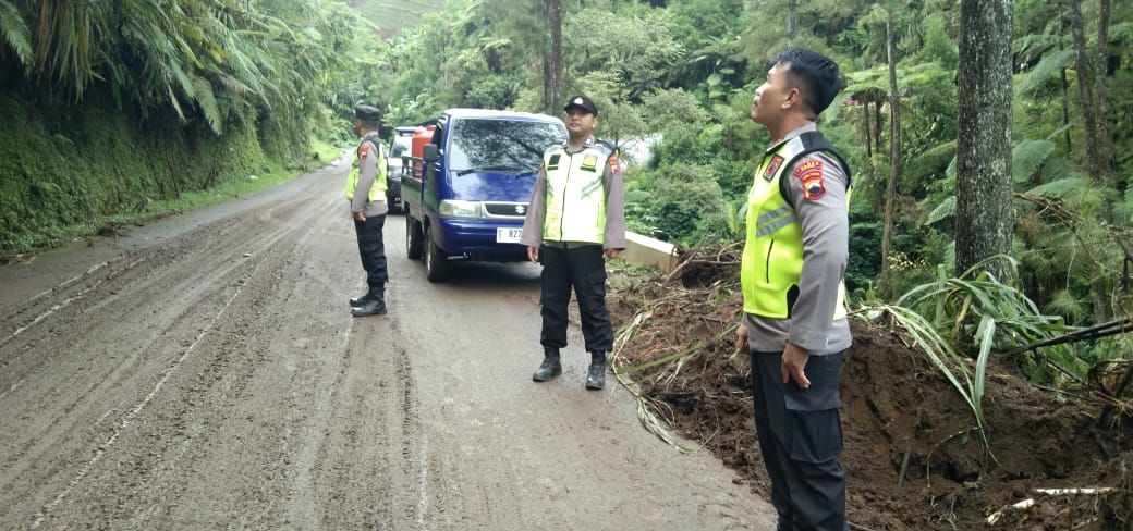 Atas kejadian tersebut, pihak kepolisian langsung berkoordinasi dengan Dinas PU untuk membersihkan material longsor.