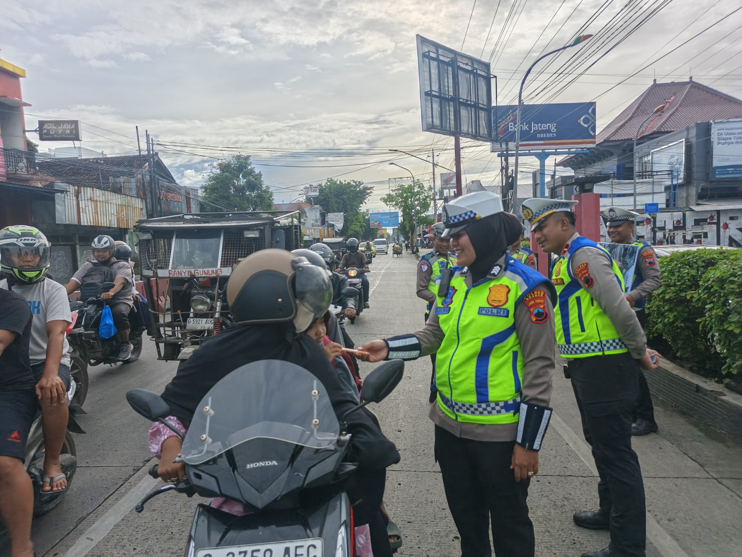 Brebes – Satlantas Polres Brebes melaksanakan kegiatan sosialisasi Operasi Zebra Candi 2025 dengan menyasar masyarakat di kawasan Alun-alun Kabupaten Brebes pada Jumat, 21 November 2025. Kegiatan dimulai sejak pukul 07.00 WIB dan berlangsung hingga selesai dengan melibatkan sejumlah personel fungsi lalu lintas. Sosialisasi ini merupakan upaya Polres Brebes untuk meningkatkan kesadaran serta kepatuhan masyarakat terhadap aturan berlalu lintas dalam rangka menciptakan situasi Kamseltibcarlantas yang kondusif.